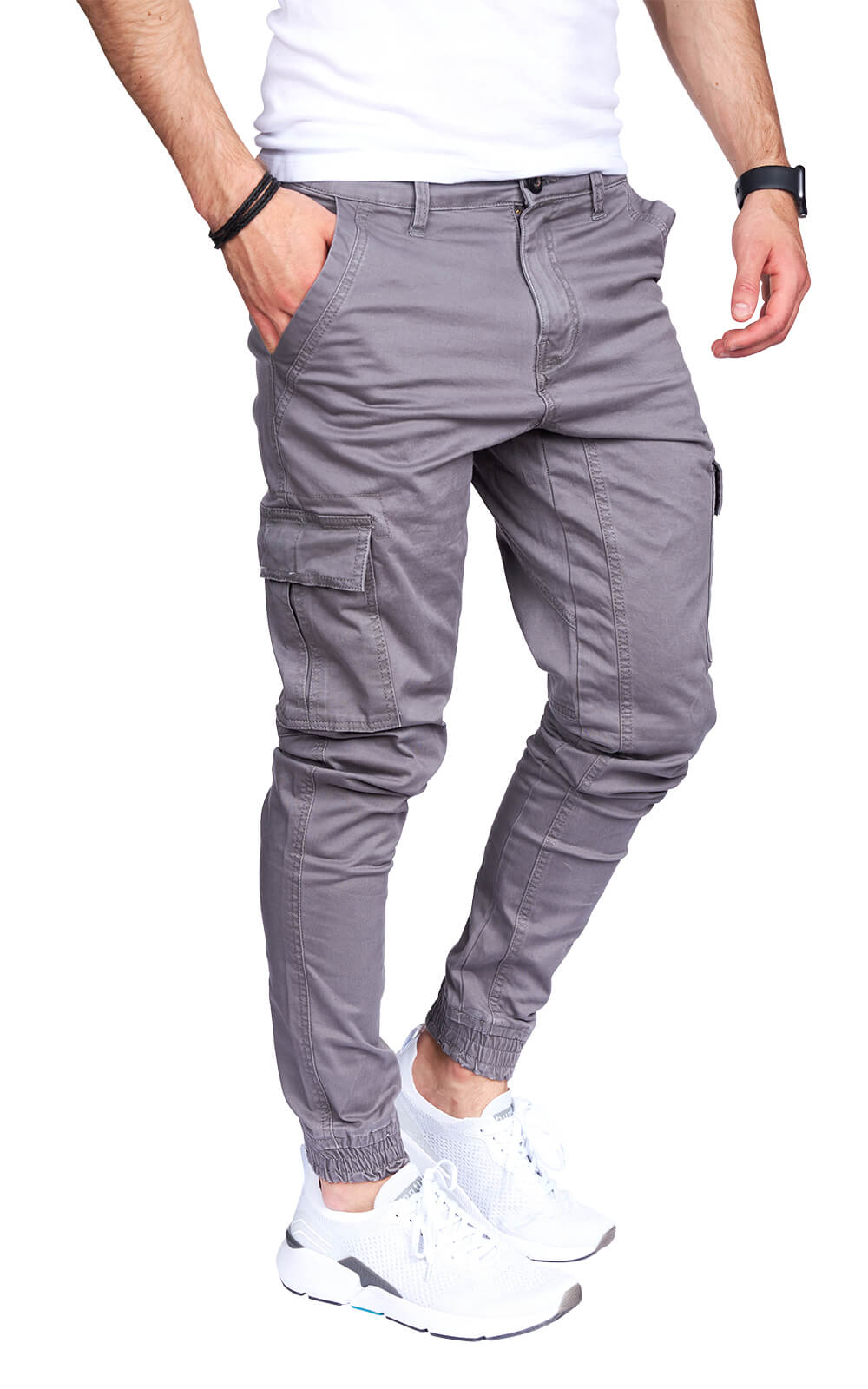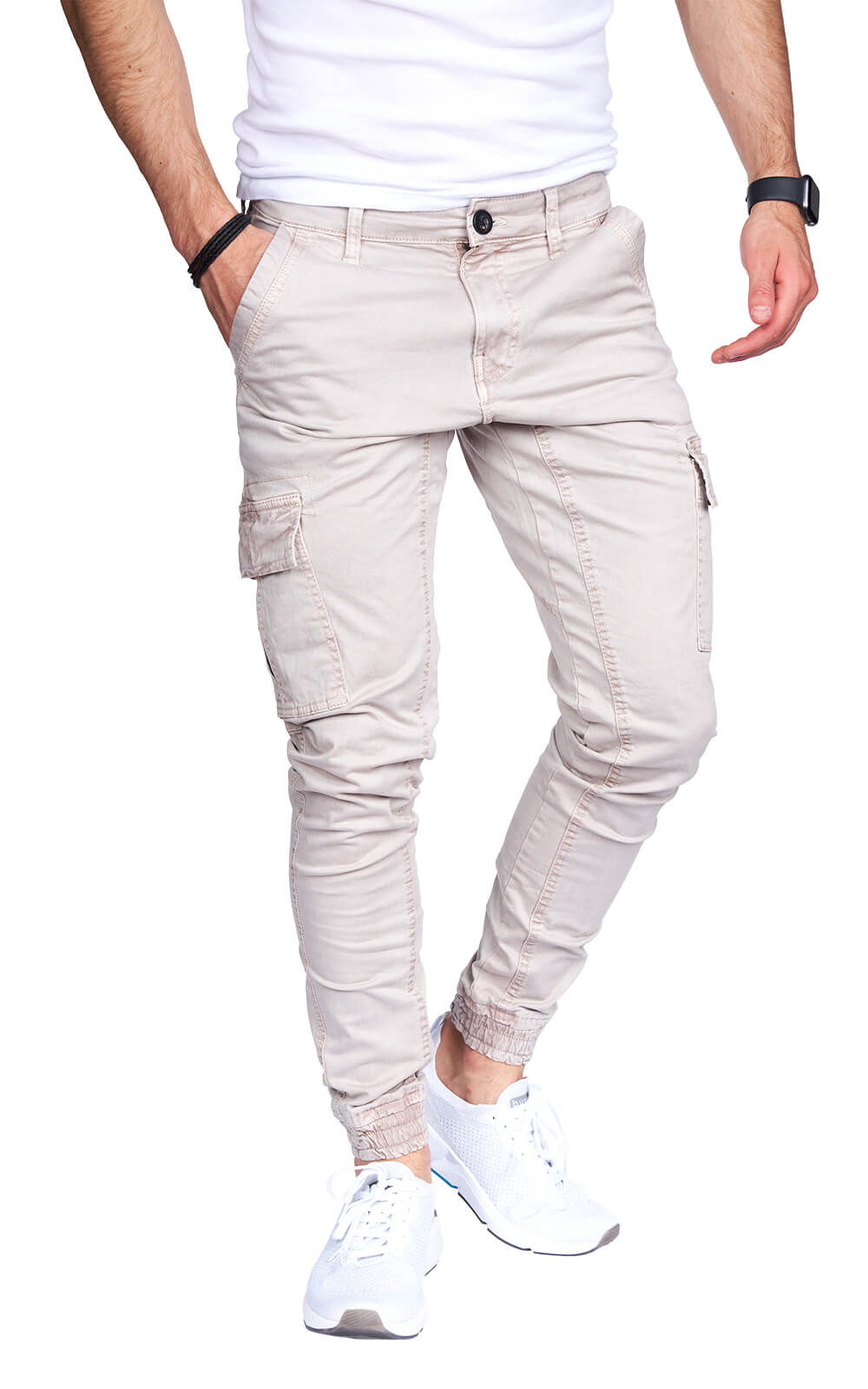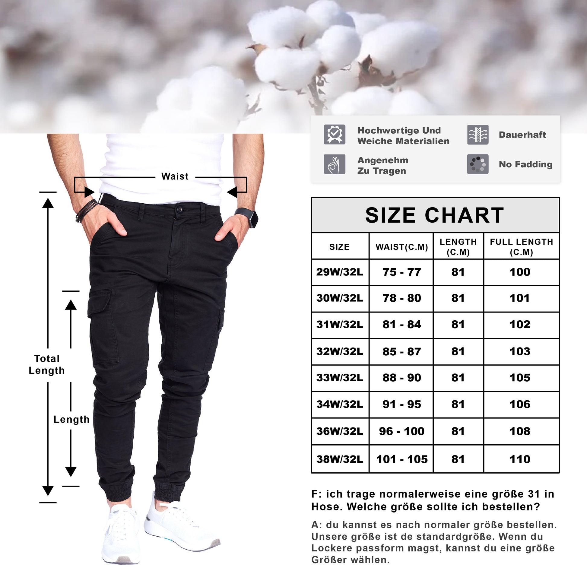 - Zwei Seitentaschen, zwei Cargo-Taschen, zwei Gesäßtaschen mit Patte und verdecktem Klettverschluss sowie ein kleines Münzfach