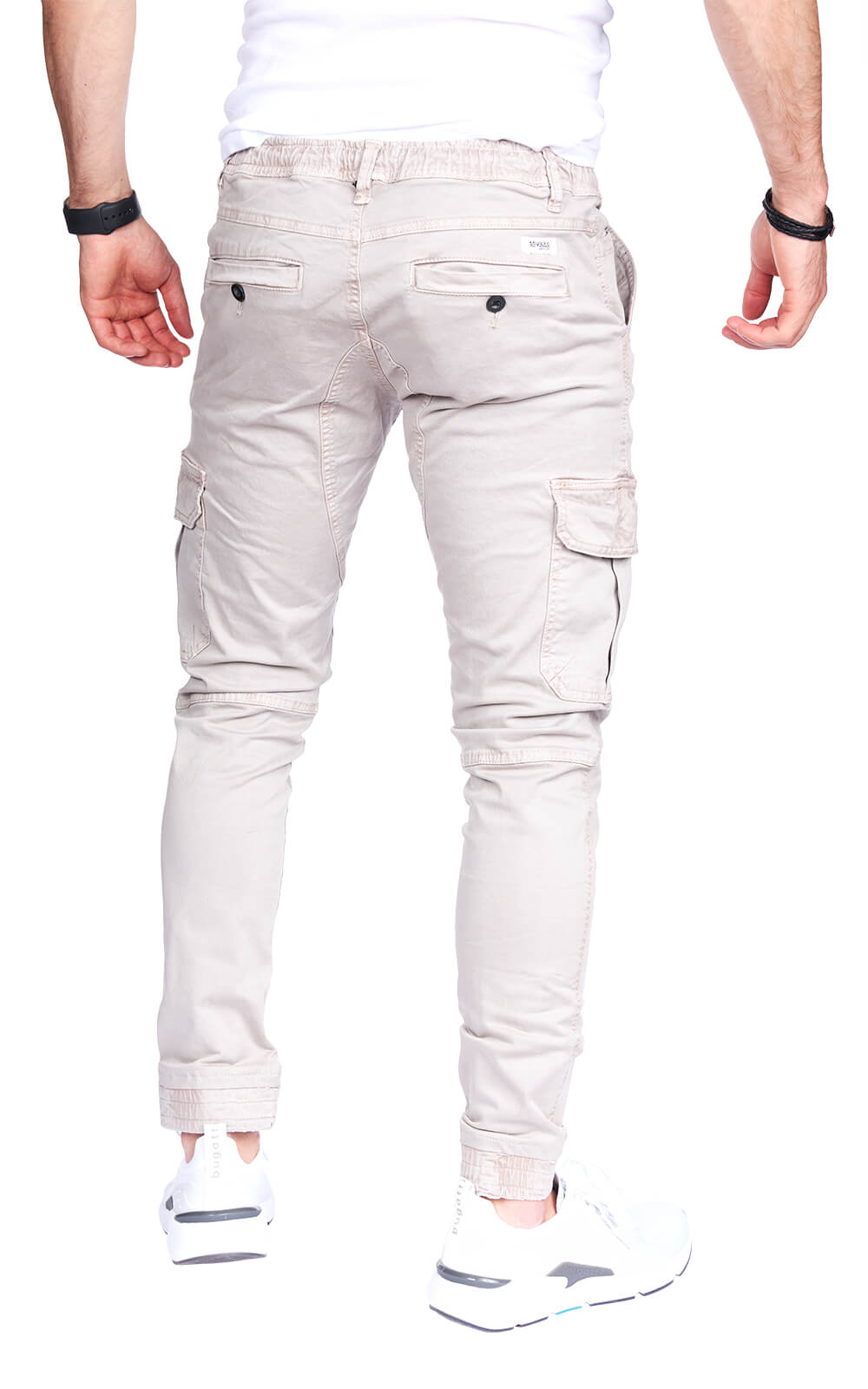 - Die Cargo- und Gesäßtaschen haben einen Ledereinsatz
